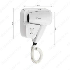Компактный размер прибора с настенным креплением дополняет удобство эксплуатации фена.